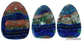 天然蓝天然原色和染色标本的差别。深蓝色中透着些紫味,并且每一颗的颜色都略微不同。