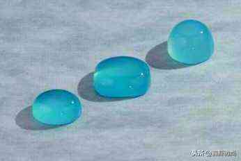 目前市场上流通的蓝玉髓大都是染色蓝玉髓,少量天然原色的蓝玉髓也有卖,可惜质量实在夸不起来。至今上过手的只有深蓝和蓝文两种,台湾的海蓝知道的人很多,可惜几乎都是染色物。人工染色的蓝玉髓,据说是用钴染料: