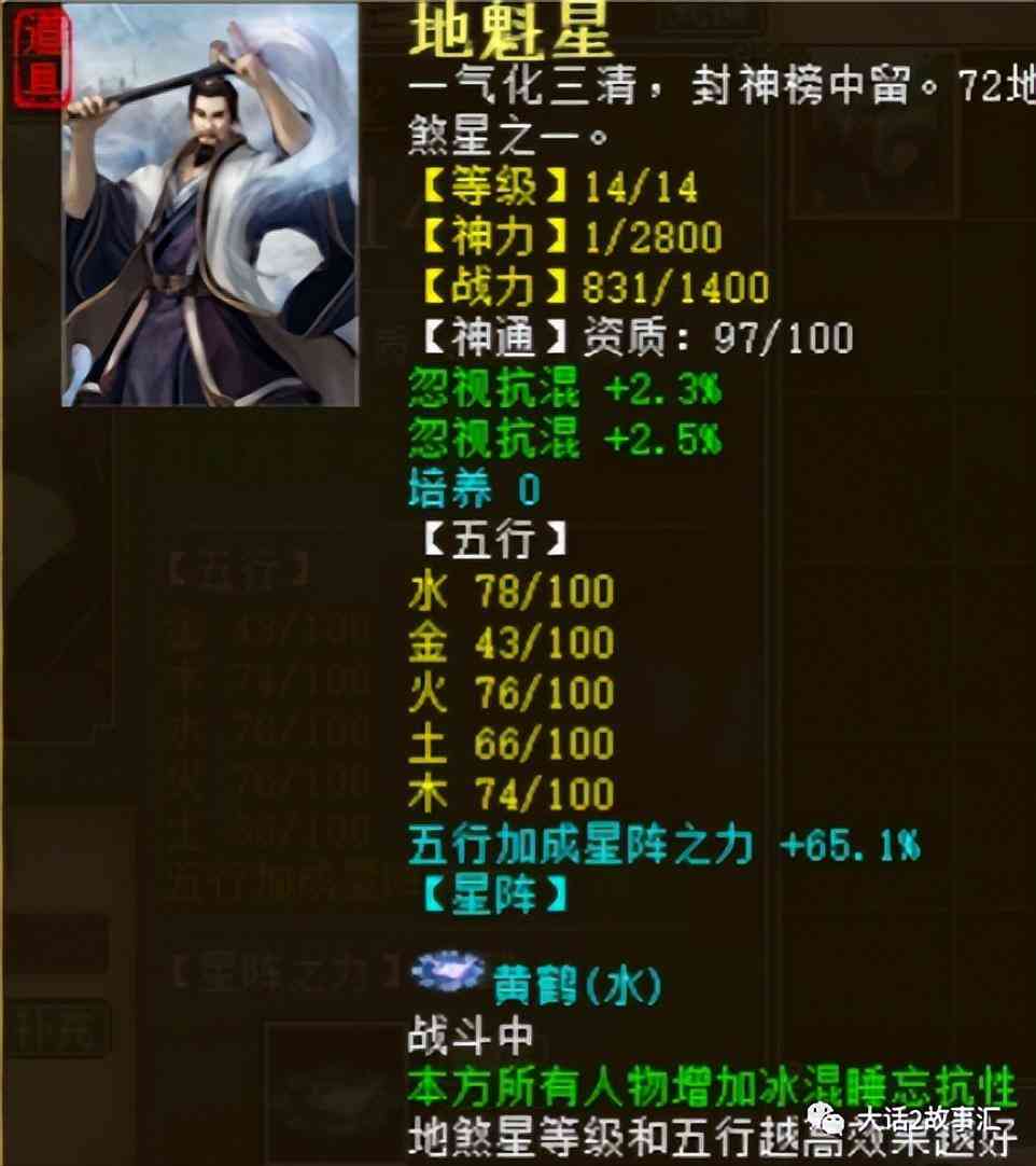 14级的星卡资质97,绿字是忽视抗混4.8,带黄鹤星阵。