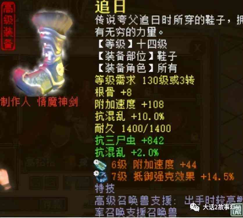 鞋子的属性是抗混乱加根骨,亮点是特技高级召唤兽支援。大家觉得这样一个平民男人在任务和帮战中表现是否能达到预期呢?