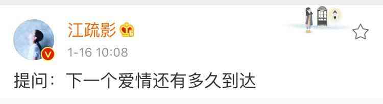 据了解,江疏影在年初时便更博“提问,下一个爱情多久到达”,此次也引得不少网友猜测纷纷“难道这回爱情真的到达了?”