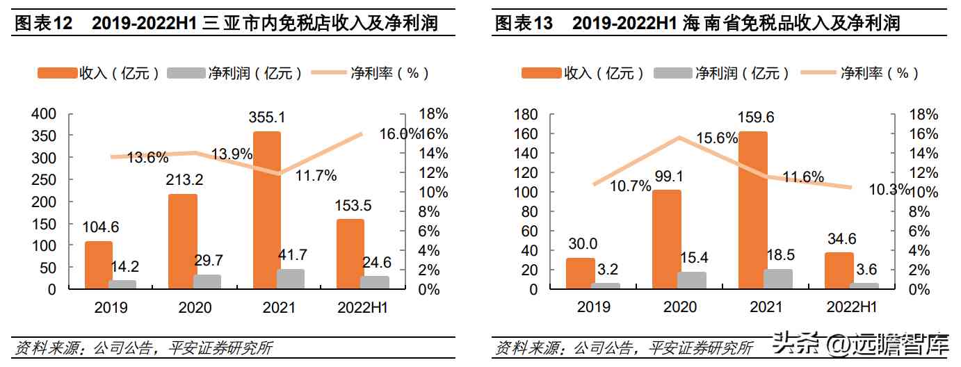 2022 上半年,三亚市内免税店收入 153.5亿元,同比下降 17.1%,净利润 24.6亿元,同比下降 3.9%,净利率上升 2.2pcts,预计主要受到海南子公司所得税优惠影响。