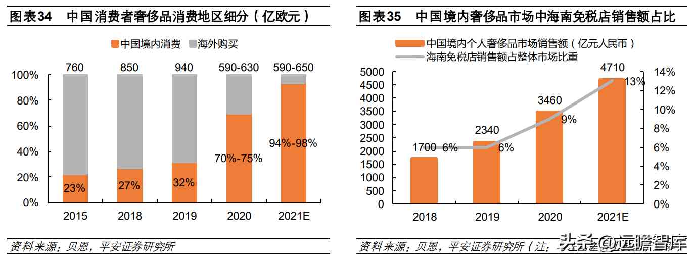 国内市场看,据海关总署,2020 年 7-10 月离岛免税新政实施 4 个月,化妆品以 48.5%的占比位居大品类,手表、首饰、服装销售占比均超 10%,化妆品、手表、首饰的平均件 单价约为 540 元、2394 元、6872 元。