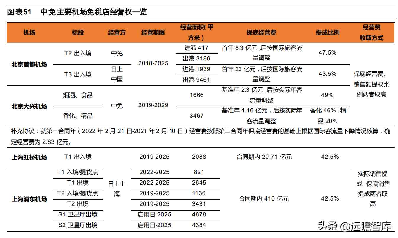 历史续签率来看,根据 H 股招股书,2019、2020、2021、2022Q1 公司现有特许经营续签率分别为 100%(两份中 的两份)、60%(十份中的六份)、75%(四份中的三份)、100%(一份中的一份),2020年续签率较低主要是自愿决定与若干小型口岸免税店停止续签。