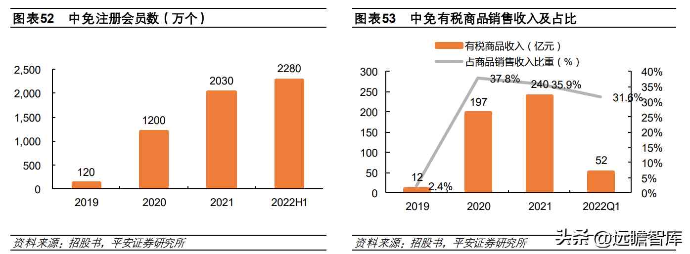 据弗若斯特沙利文,公司是全国个搭建线上预订平台、线上会员购平台的免税运营商。截止 2022年上半年,公司大会员系统注册会员数达到 2280万个,较 2019年增长 18 倍。受线上业务带动,有税商品的收入比重提升到 30%+。
