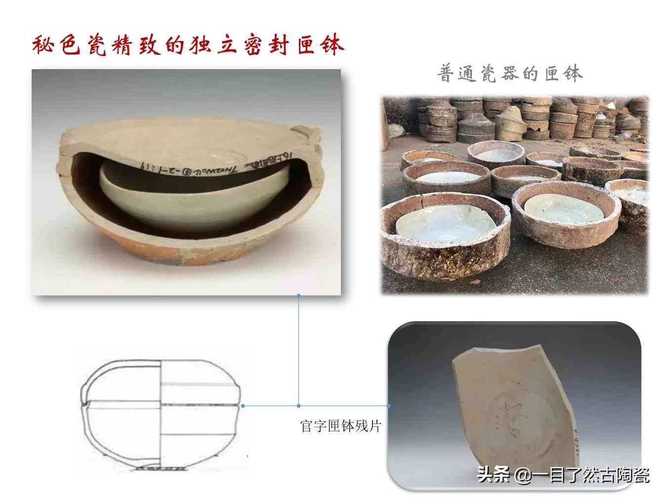 秘色瓷与普通越窑的特殊之处:有关介绍秘色瓷的图文网上很多。这里还是按照我的习惯, DIY归纳几个图,方便您一目了然地了解秘色瓷与普通(越窑)瓷器的不同之处。