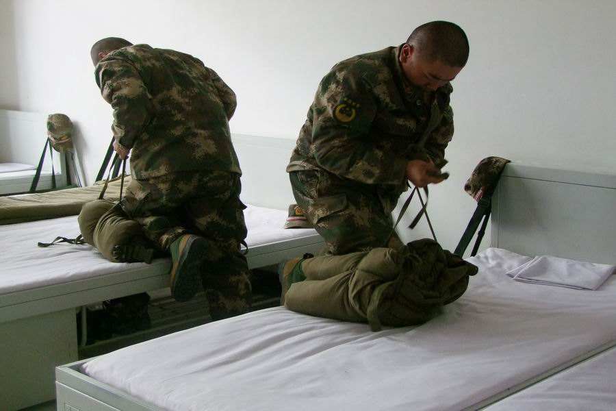 有的战士为了能在最短的时间集合完毕,不脱衣服和裤子就睡觉的,有的是,直接把腰带扎好的。然而,这些好像都逃不过班长的“火眼睛睛”,他总会带着不屑的口吻说:“这些都是我们玩剩的。”当你经过一天高强度的训练后,躺床上瞬间入睡时,急促的哨声刺破梦乡,然后,各种洋相就来了。