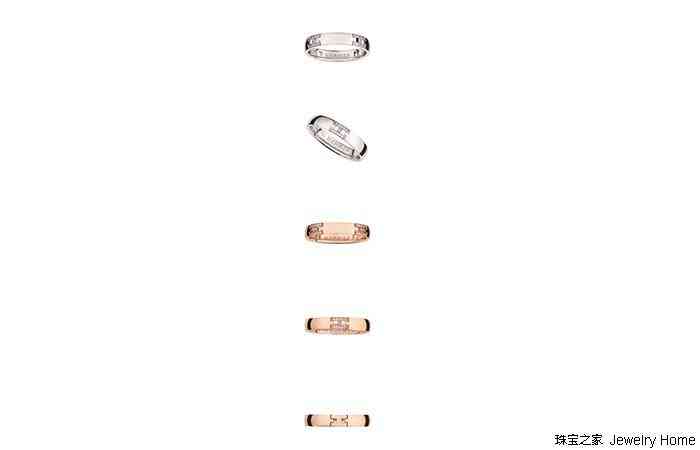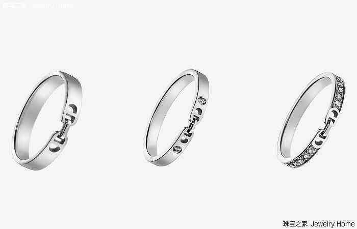 从毫无修饰的素圈铂金戒指,到密镶一排钻石,再到戒环中心镶嵌一颗美钻,Ever Kelly系列无不向我们表达着优雅、简单的设计精髓。除了婚戒之外,在爱马仕诸多黄金、玫瑰金或镶钻白金的细版手镯上也可以看到它的身影。