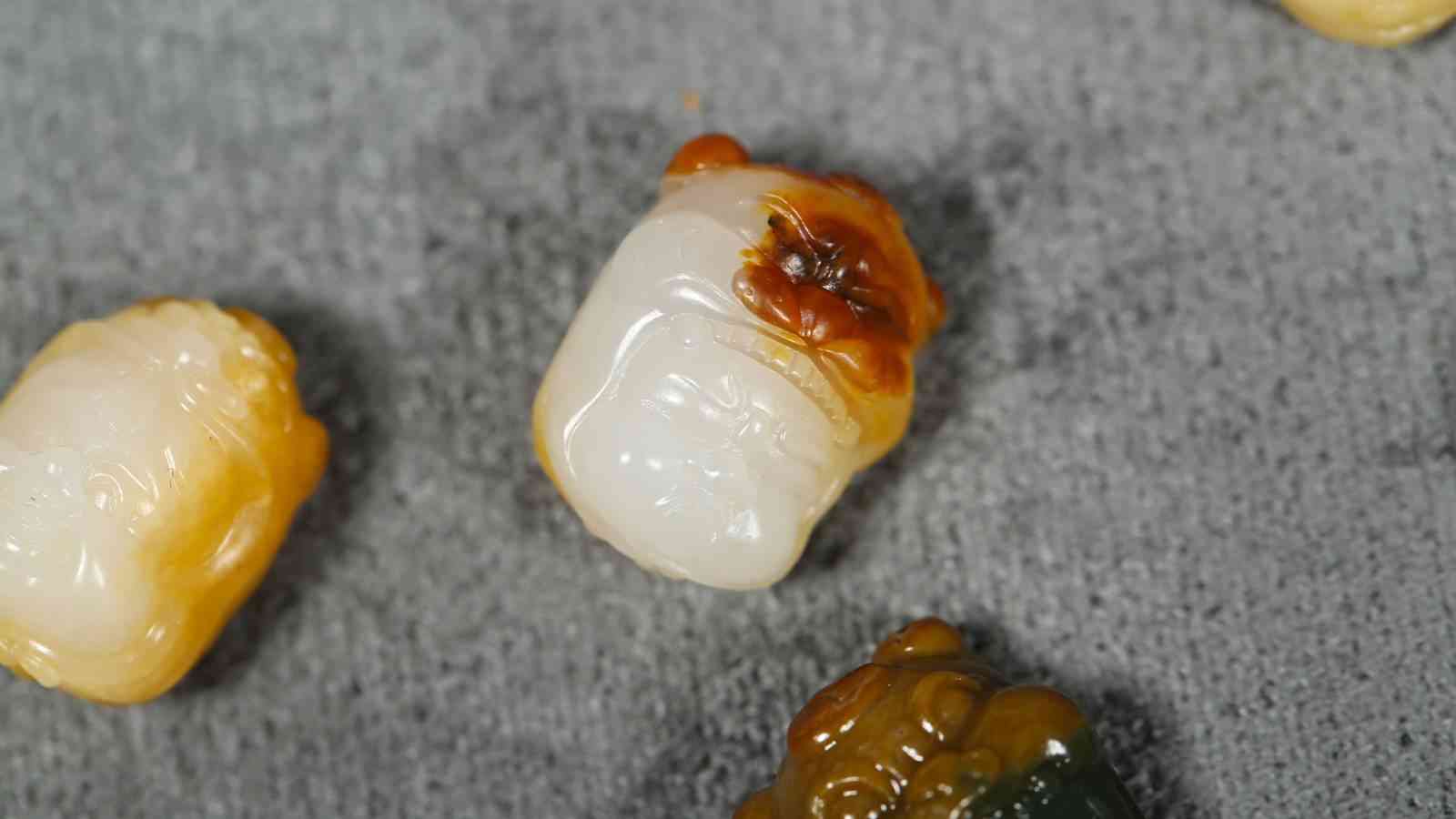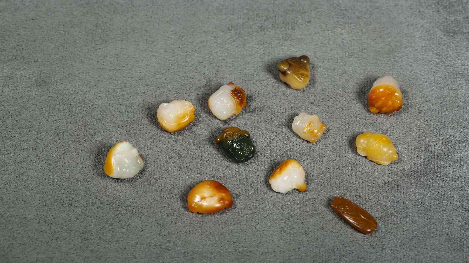 收集特色独籽,相信是很多藏家的爱好之意,此系列作品从采集到雕琢,11枚独籽收集,历时三年之久,依型随色而琢,具象生动的虎头帽,福气满满的孩童开脸,神形兼备,各有特色,精致有趣,玩法多元。