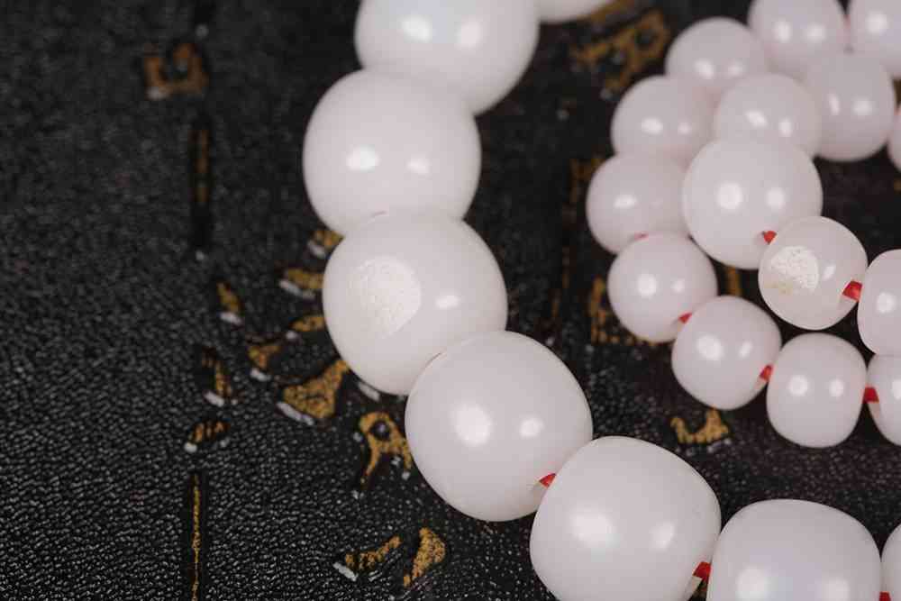 玉质与优渥籽料不相上下,细度过手电,细腻油润,近无结构,珠型饱满,属收藏级别的手串。
