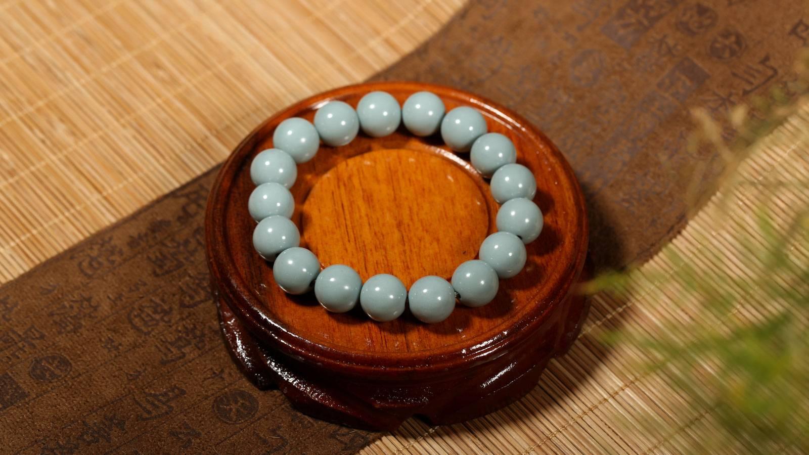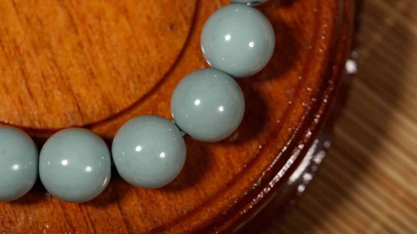 玉质上乘的新疆山料,有着市面很少见的汝瓷蓝玉色,蓝色浓郁,玉色怡人,圆珠颗颗饱满,显白且百搭,和这暖暖的春日,很是相衬。