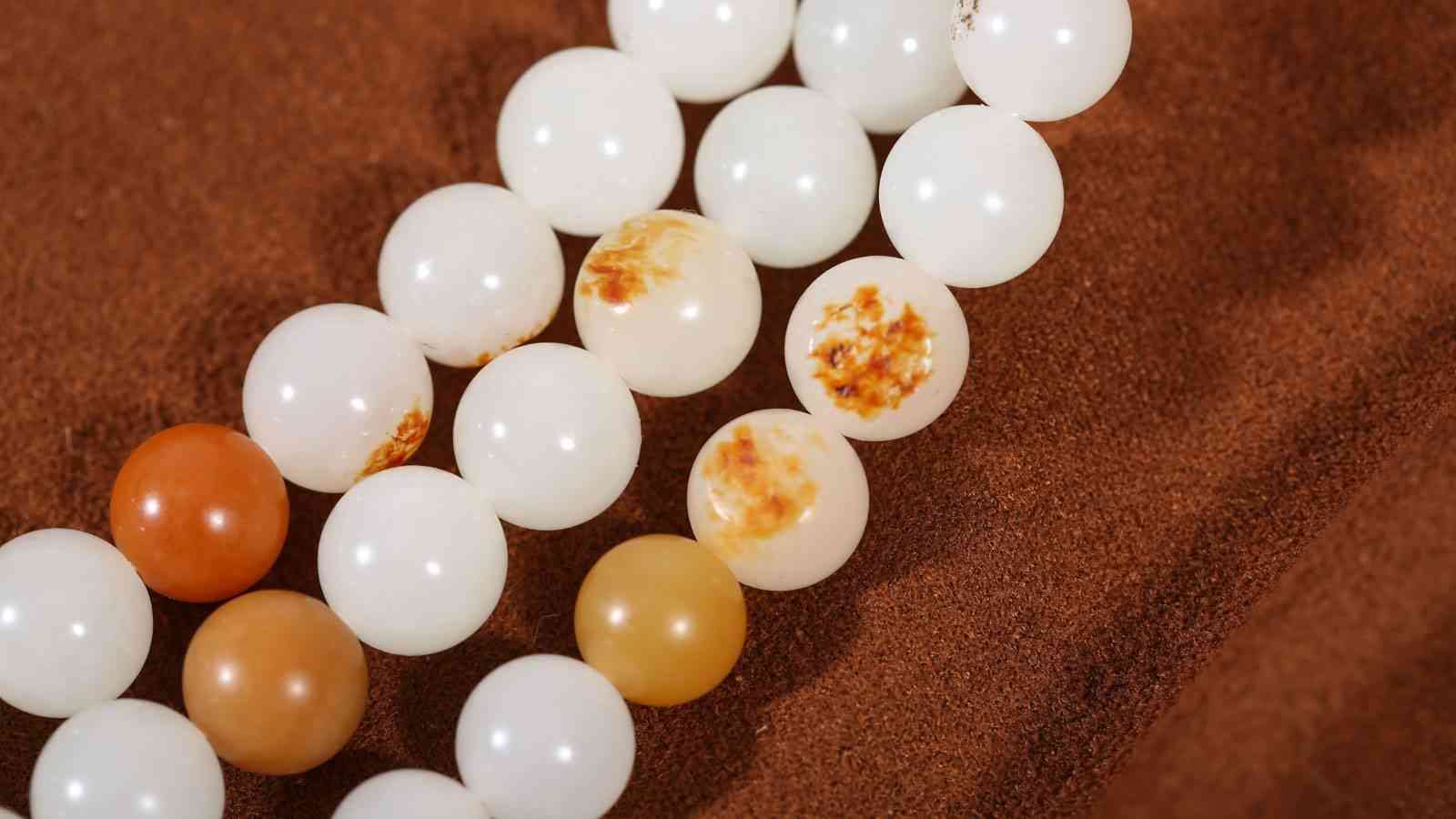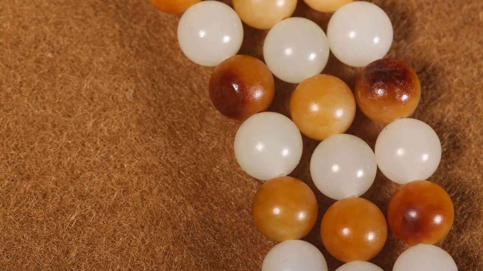 玉珠串盘在手中,体会和田玉多元的美感,以及不同颜色珠子盘变的不同效果。