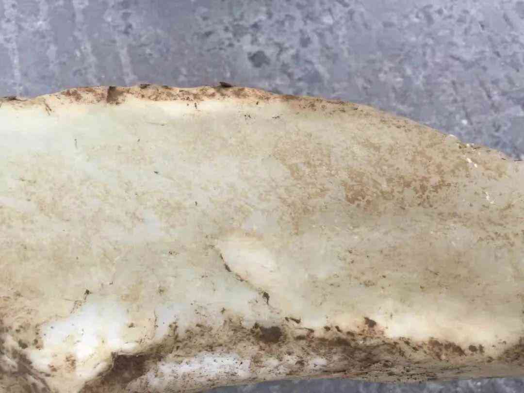 黑皮料里的精品玉质都很细腻,一般伴生有黑褐色的糖皮,白度浓郁而没有“瓷”的感觉,油性也非常好。这种料子偶见极品,油脂感十分强烈。