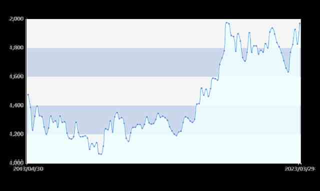 而黄金凌厉的涨势,再次引发消费者强烈关注。特别是这个月,3月初国际金价每盎司最低1810美元,随后在近两周的时间里快速上涨,在3月21日达到了每盎司2009美元的高点。在国际金价带动下,上海黄金交易所一号金也一度上涨到每克466.72元,上海期货交易所黄金主力合约达到每克450.40元。