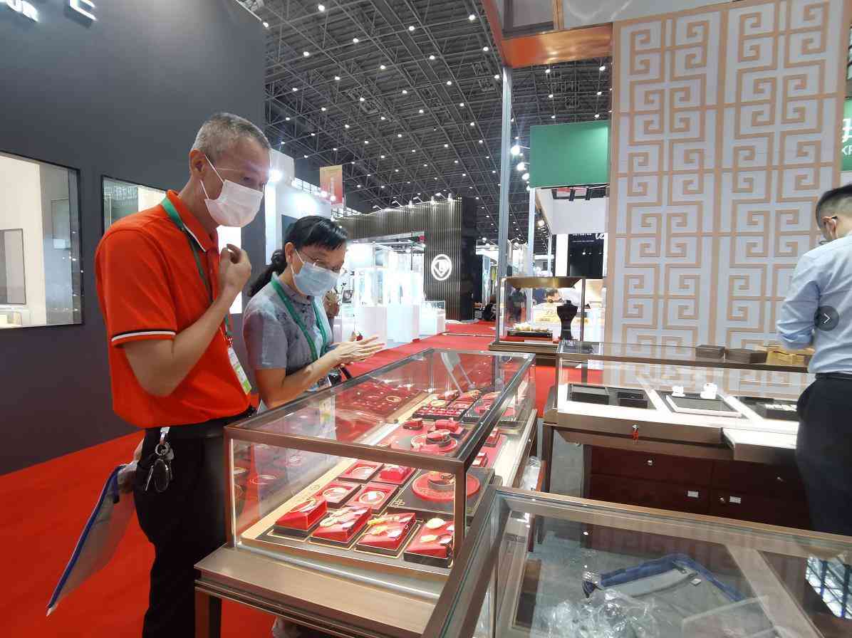 除艺术类珠宝首饰展品外,记者还看到有黄金古法、传统珐琅、足金贺岁、设计师款、投资黄金、镶嵌首饰等共计275件商品展出。李根向记者介绍,“希望以消博会为平台,展现创新的北京文化、中国文化,汇聚优质的全球资源,以精工、精美、精湛的首饰产品,助力国家‘十四五’发展,满足百姓消费升级需求。”