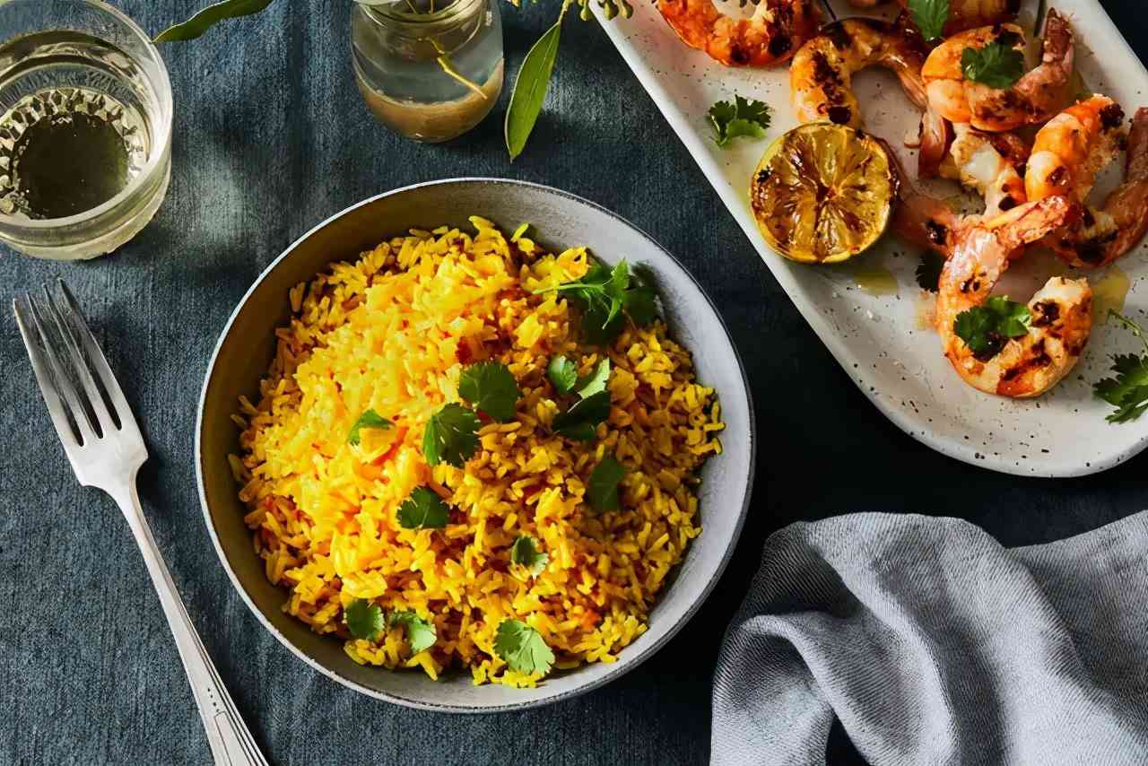 做法:大米洗净后加水放入电饭煲,洒少许姜黄粉拌匀。正常煮熟后搭配咖喱或者肉食用即可。