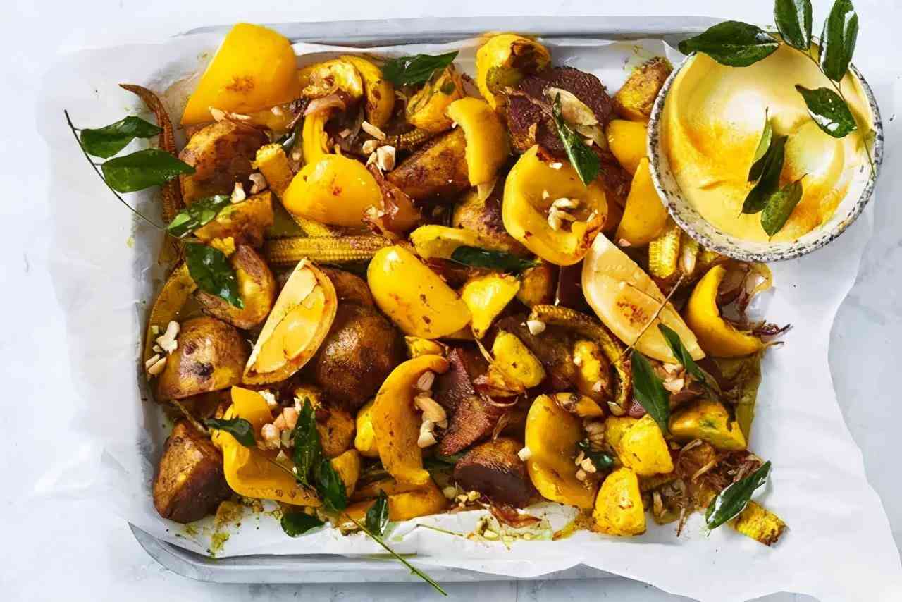 做法:蔬菜、油和盐混合后烤熟,撒姜黄粉调味,用姜黄微涩的香味带出蔬菜的鲜甜。如果能买到新鲜姜黄,也可以将其切丝和蔬菜一起烘烤。