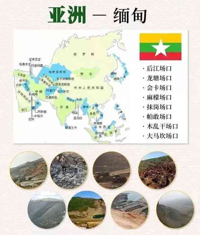 矿区地质特征缅甸翡翠矿床位于缅北摩谷西北的雾露河中卜游地区,原生矿带长250km,宽10-25km,走向北东,主要分为三大矿区:后江矿区、帕岗—道茂矿区、抹岗矿区,其场口最大,产出量最多。同样有名的还有七个矿区:会卡、麻檬、大马坎、自壁、龙塘、马萨、目乱干。余下还有十多个矿点皆有翡翠产出,各个场区所产翡翠外观、质量、颜色都有各自的特点。