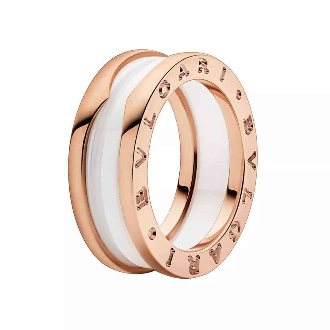 BVLGARI宝格丽 B.zero1系列18K玫瑰金镶黑陶瓷/白陶瓷戒指