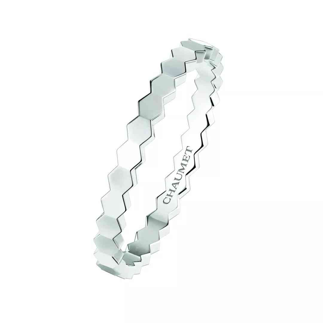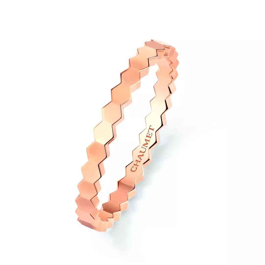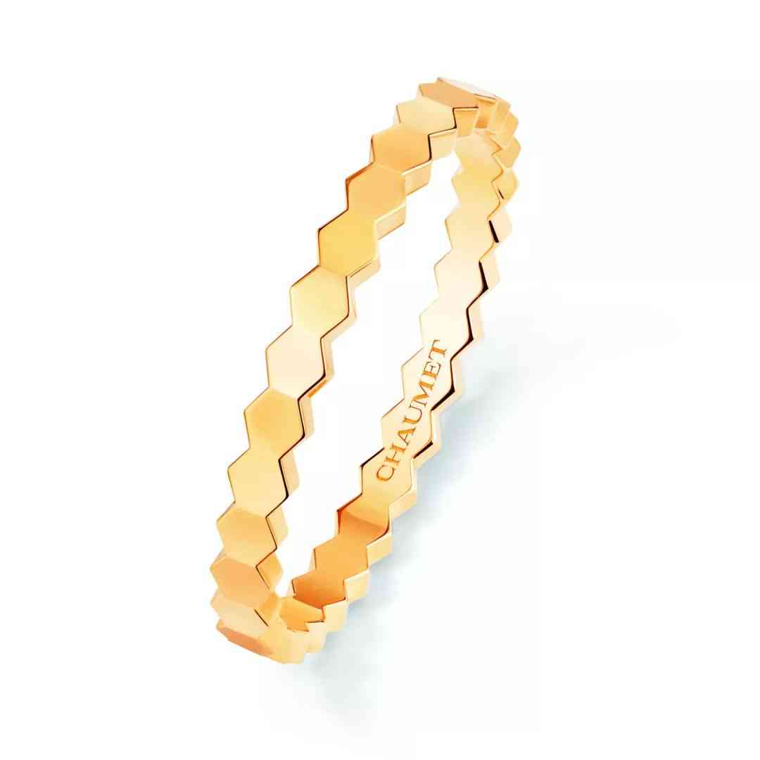 CHAUMET的Bee My Love系列爱酱也非常喜欢,相连的六边形外形灵感来源于蜂巢,很有设计感,也相当精致。无钻款的价格仅在七千左右,可以入手多枚,叠戴更加好看。