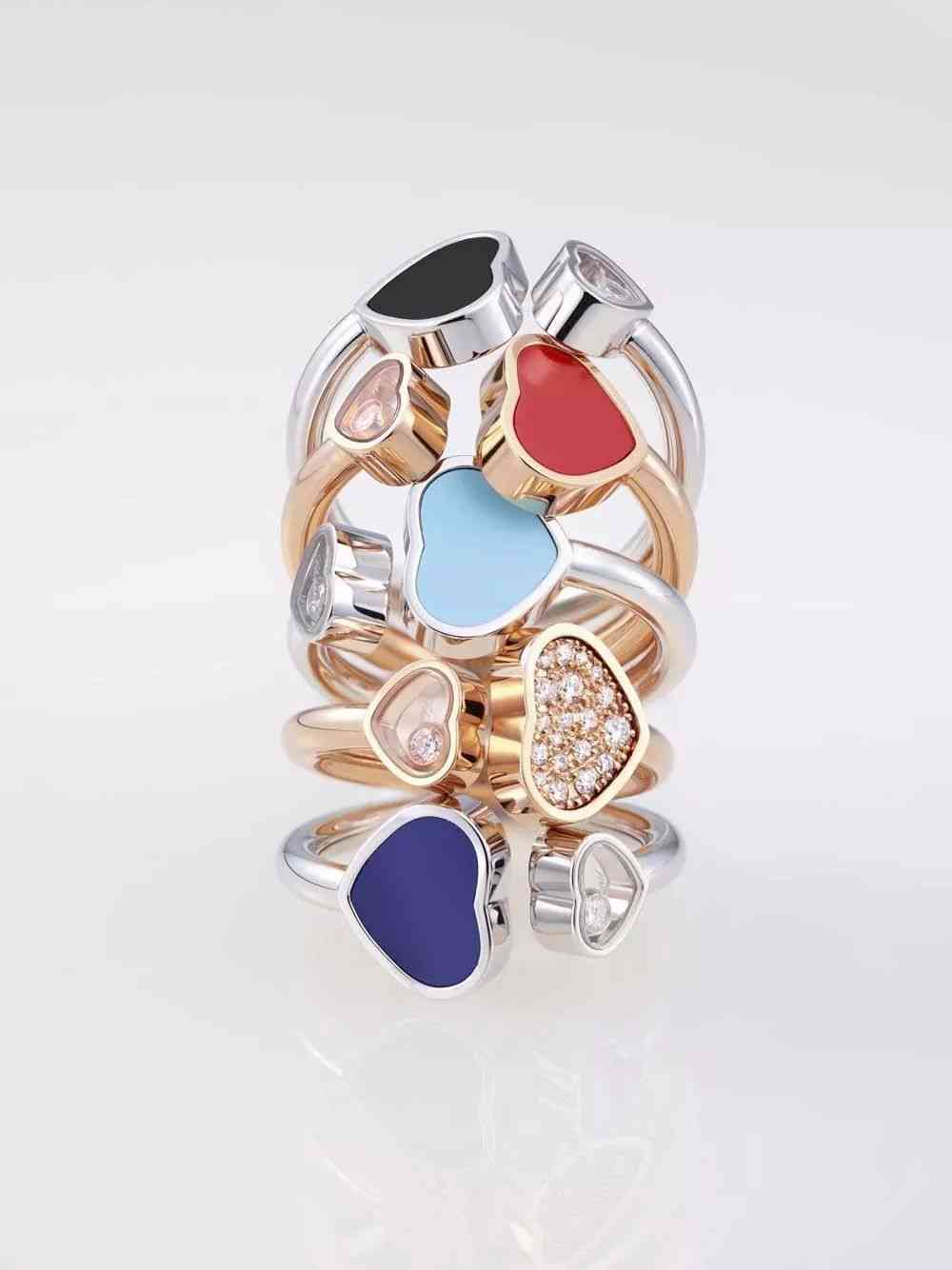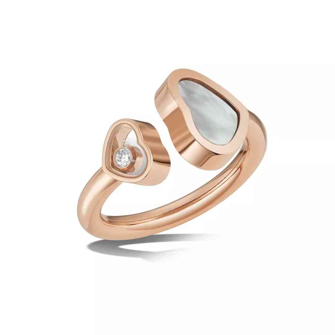 如果你少女心满满,不妨考虑萧邦的这款Happy Hearts系列戒指,开口式的设计和两颗相向的爱心表达了对于美好的祈愿。
