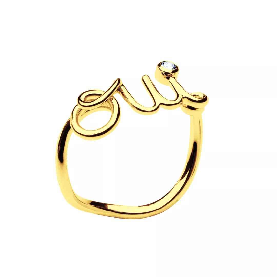 另一款Oui系列戒指更是如同写在指尖的情话,将法语的“Oui”(意为yes)融入在戒环设计上,并且点缀了一枚钻石在字母“i”上,十分灵动、唯美。