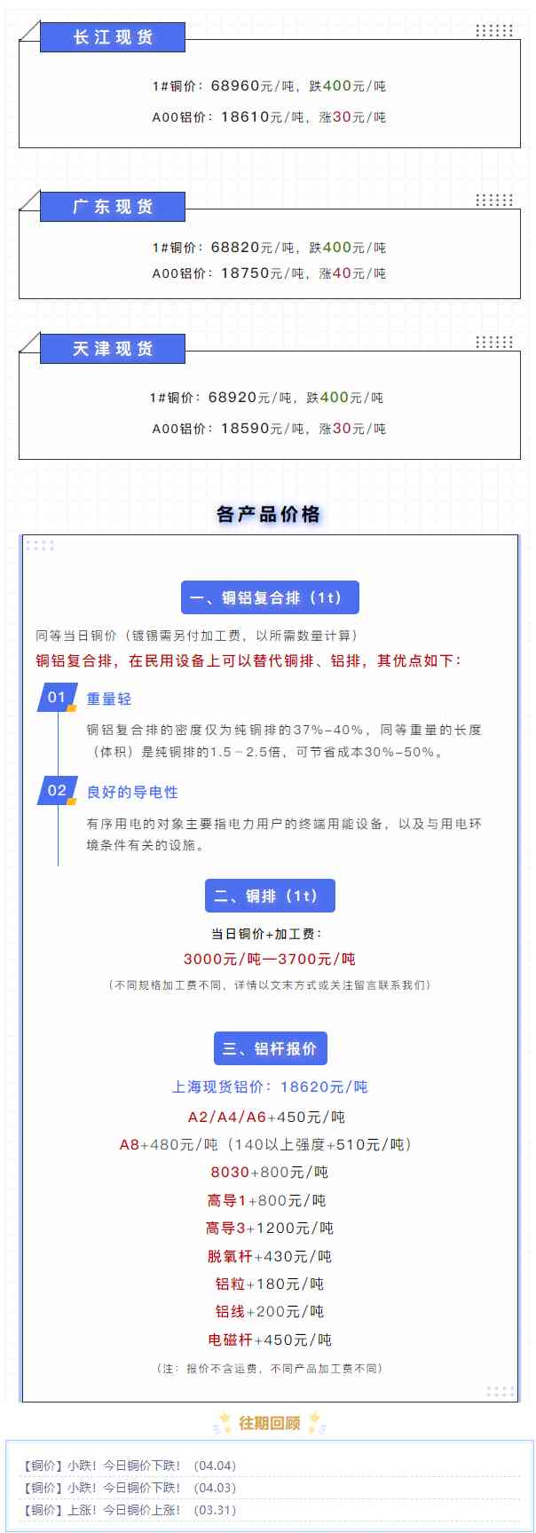 今日铜价下跌!长江现货,广东现货,上海铝杆价格公示(04.06)