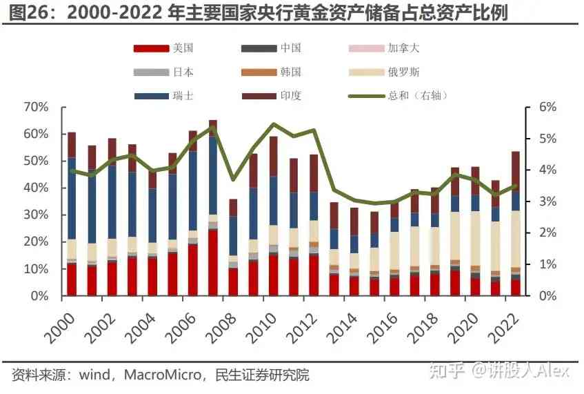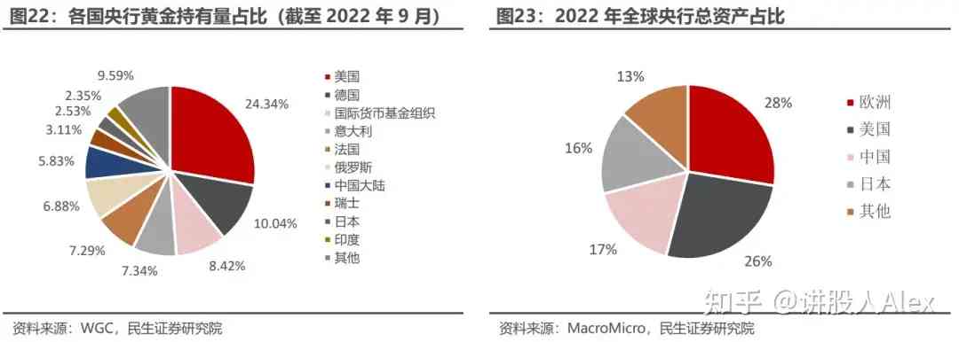 从各国央行黄金持有量来看,截至2022年Q3,美联储黄金持有量占全球各国央行持有黄金总量的24.34%,排名世界,其后的央行分别为德国(10.04%)、意大利(7.34%)、法国(7.29%)和俄罗斯(6.88%)。从各国央行资产负债表表的规模来看,美国、欧洲、日本、中国四大经济体占全球主要央行总资产的比例分别约为26%、28%、17%、16%,其中美国和欧洲各国等发达国家的资产规模与自身的黄金储备占比较为匹配。大概有399吨黄金在2022前三季度被各国央行买了,是2020年的300%,那么中国购金规模是否还有潜力继续买。