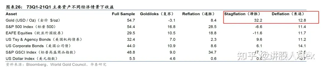 如果答案是和周期有相关性,那么明年是一个什么经济周期?美国大概率是从滞涨递延到衰退。那么衰退的情况下, 什么大类的资产表现是不错的,从历史上来看,黄金是其中一个答案,当然有兴趣的朋友也可以关注其他大宗商品。另外中国也有可能出大规模刺激政策,让CNY市场钱变多。