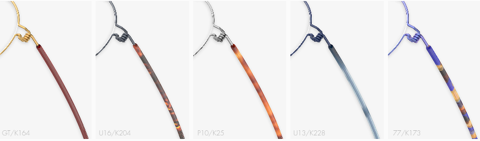 Air titanium rim系列还推出醋酸纤维(板材)内框设计的款式, 为简约设计带来更多的对比和深度。醋酸纤维(板材)内框在保留钛丝镜架的所有优点的同时, 使您的镜架更为坚固。