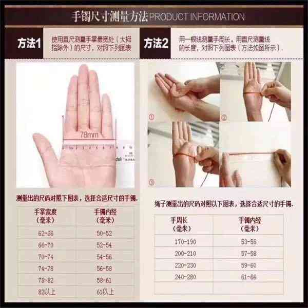 首先最重要的要素,那就是要确认自己的尺寸规格。可以用市面比较常见的软尺测量方法或者是去商场试戴下。先确认下哪一个圈口最合适自己,在确认好自己的圈口之后,我们可以用排除法来去选择自己合适的手镯。