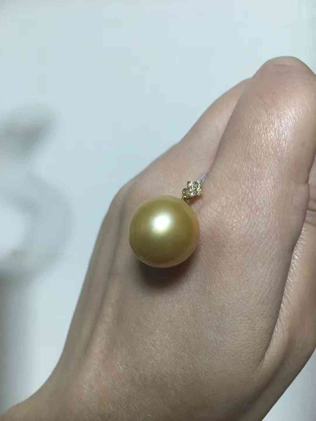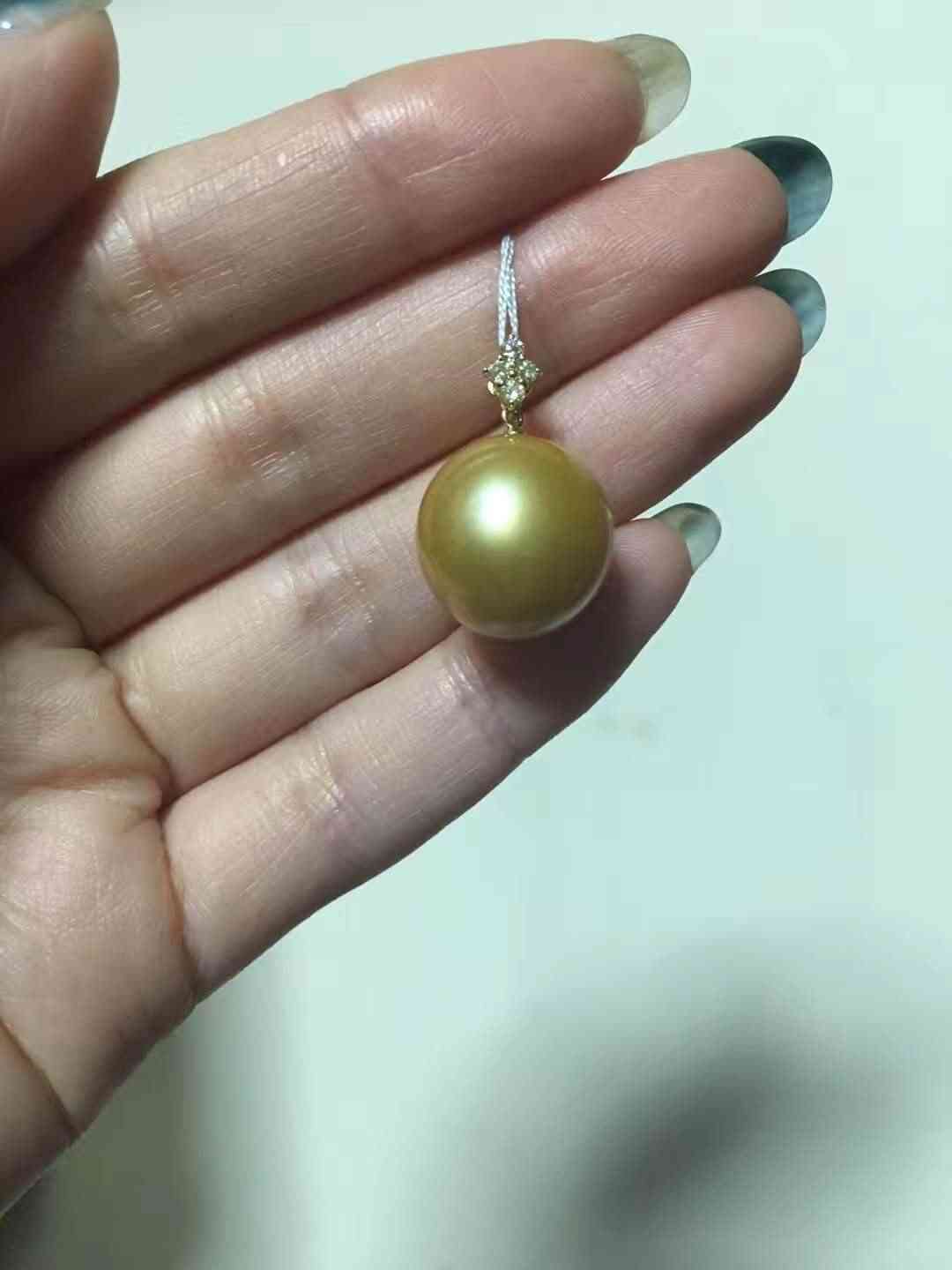 像这样一颗正圆无暇的金珠,普通人还是消费得起,单独做一个项链就很美,简约款,特别提升气质,小几千元搞定。