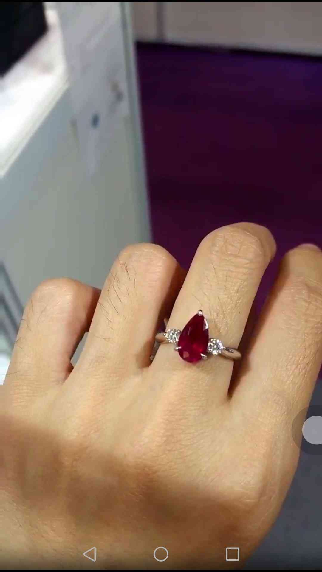个是无烧全净体鸽血红红宝石,2克拉左右,看着品质就很好,价格也是30000多,哈哈珠宝可加watch871,宝石有烧无烧都是天然的,即便去了最权威的国检机构,也是一样,无烧还能颜色这么好的,肯定贵啊,一般有烧的颜色好的,一半价格就可以了,还是比较划算的。第二个是贵宝,天然帕拉依巴0.3克拉,颜色非常漂亮,看起来应该是巴西的产地。钻石0.84克拉。铂金900。指圈12号,价格10000出头。
