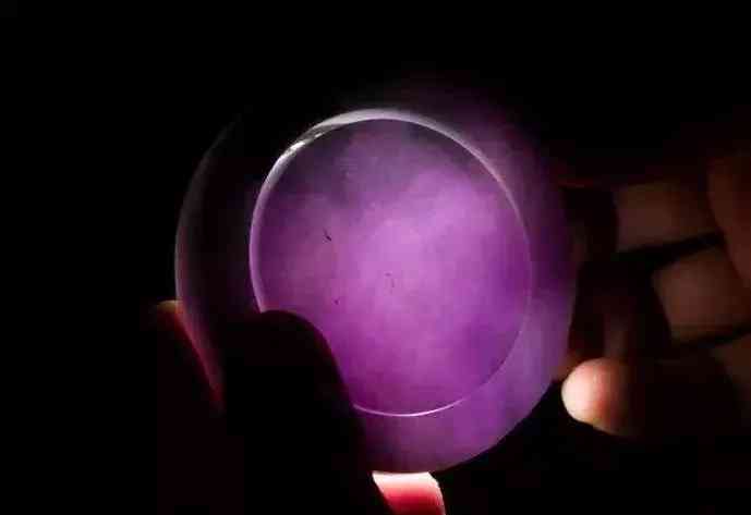 打灯通透对穿,胶感十足。赶紧拿灯光打打看,这下子开心坏了,这光的晕染度来看,差不多四五分水了,相当不错,而且料子很干净,目测应该可以出紫罗兰手镯。