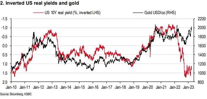 值得一提的是,实际收益率的变动,尤其是美国10年期美债收益率,在历史上对金价推动作用显著,本世纪初实际收益率下降推动了黄金的上涨。然而,随着实际收益率转正,黄金也出现反弹,两者之间似乎出现了明显的脱节。汇丰预计随着时间的推移,美国实际收益率影响可能重新回到正常趋势。
