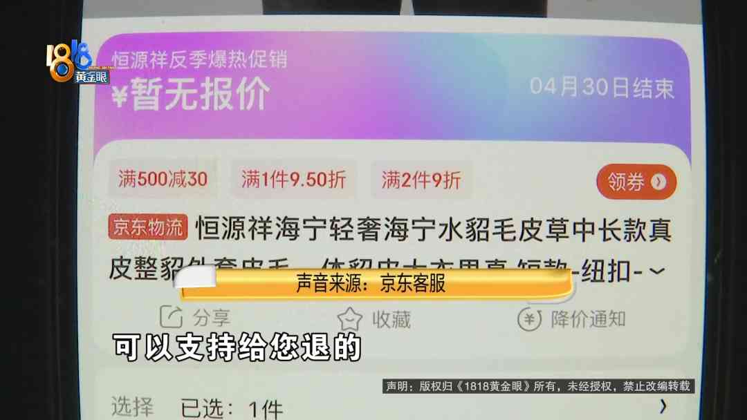 节目播出后,京东方面反馈,已协调商家为用户退款并作出体验补偿,平台将严格依据规则进行核实和处理。小郭表示,处理方案是两件貂皮大衣退货,再补偿2000元。
