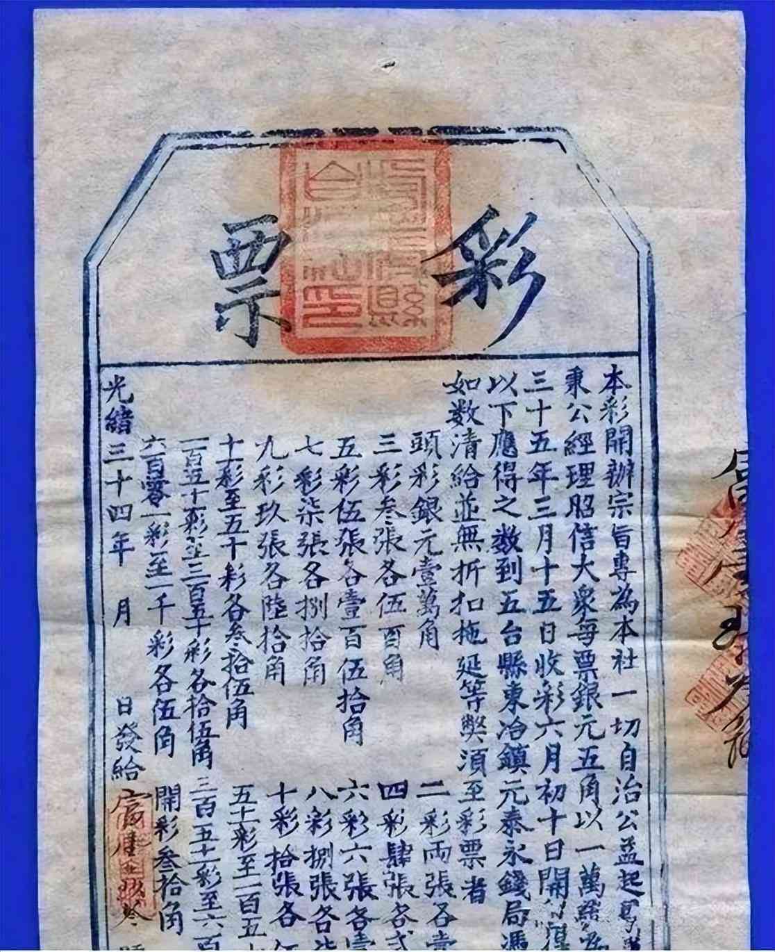 既然官方开了口,晚清彩票的种类,一下子多了起来,有的公司破产后,就拿所剩资产充当奖品,通过彩票偿还债务。