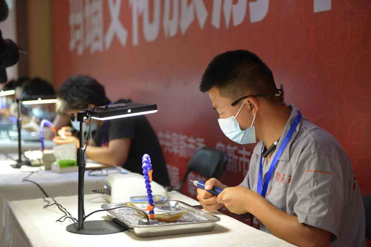 玛瑙雕刻技艺现场展示活动火热进行,中外青年积极参与其中。