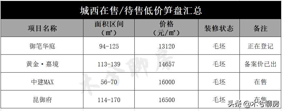 其中,即将登记的御笔华庭房价最低,只有13120元/㎡,其次是黄金·嘉境。
