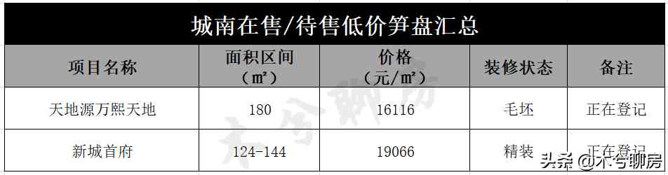 城南4月在售的产品较少,所以反映到均价就比较低。而即将推出的产品有天地源万熙天地和新城首府。