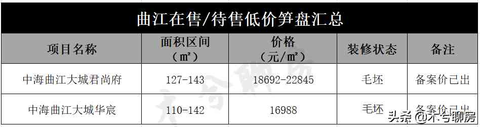 曲江在售/待售的有天地源大都会和中海曲江大城。天地源大都会待推188㎡的超高层,价格待定。